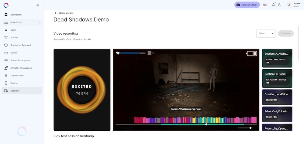 The Ovomind Dashboard provides a professional environment to analyze user emotional responses after a session, visualize emotional timelines, and manage the full Ovomind ecosystem.